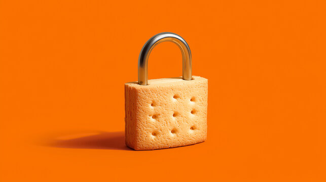 A closed padlock in gentle lavender hues sits against a smooth apricot background, symbolizing themes of online security and privacy in a minimalist setting