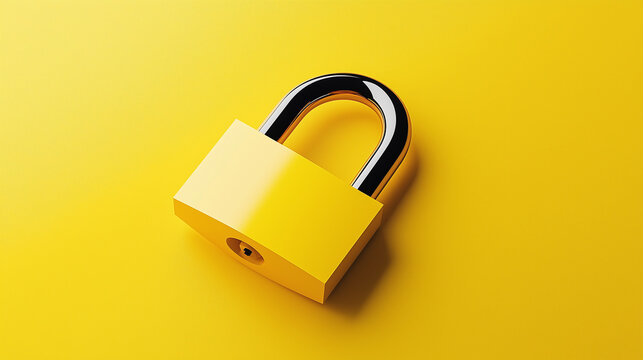 Bright yellow padlock symbolizing security, protection, and privacy against a clean yellow background, representing data protection, safety, and secure access in digital or physical environments