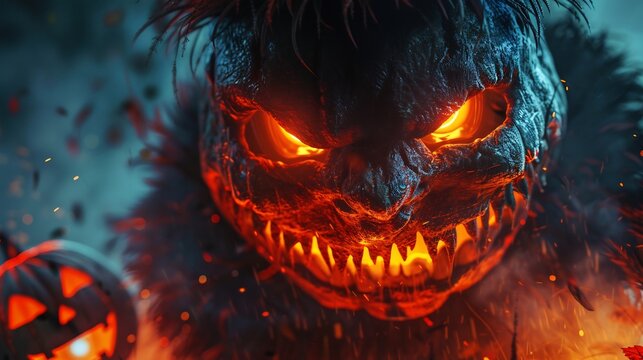 Mystical ritual with candlelight, pumpkins, and deer skull in dark forest