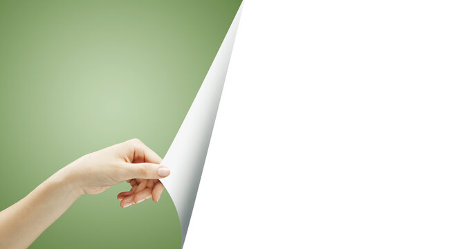 Curled corner of a white paper