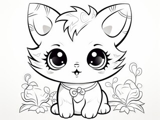 Kawaii cat coloring page - charming and simple line art for creative fun, black and white vector illustration