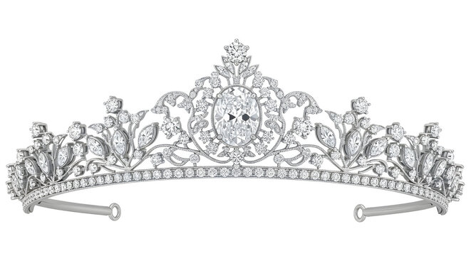 Luxury Diamond Tiara Crown Jewelry Accessory for Wedding and Royal Event Design isolated PNG with Transparent Background