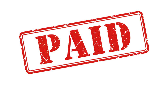 Red rubber stamp with the word PAID imprinted on a white background