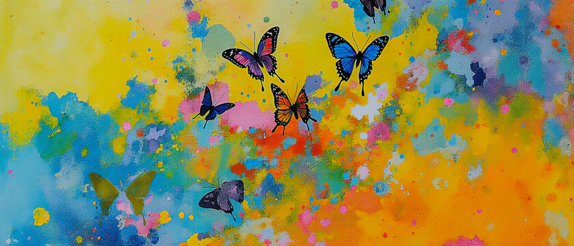Colorful butterflies emerging from a painter’s palette as though the paint has come alive.