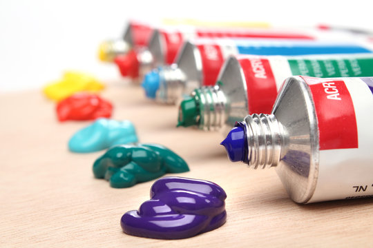 Colorful acrylic paints in tubes