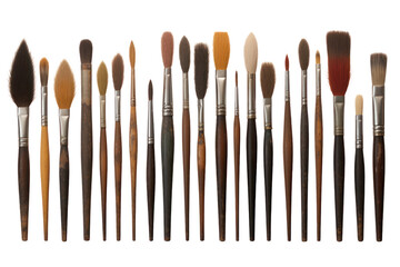 A collection of paintbrushes of different sizes and shapes, isolated on a white background