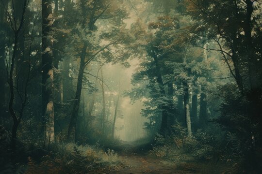 Green forest painting landscape outdoors.