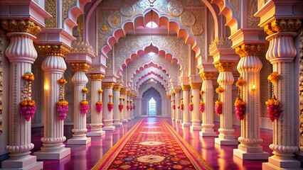 Masonic luxurious palace ballroom with crystal chandeliers and opulent decor