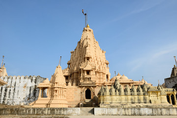 Jain temple, newly constructed, at the foot of Shatrunjaya Hill, in the early morning sunshine, Palitana, Gujarat