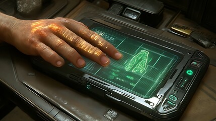 Digital fingerprint privacy rights security hologram virtual lock biometric authentication innovation hand technology concept background integrity confidence