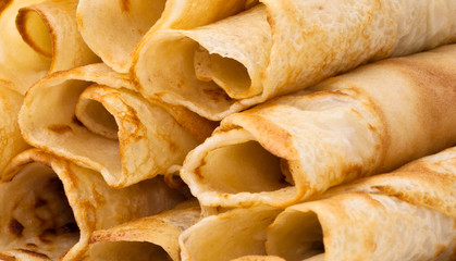 Delicious sweet pancakes with maple syrup and batter. Generative Ai