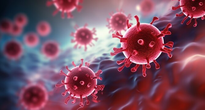 Red virus cell microscopic view digital illustration infectious disease pandemic medical science futuristic background health concept
