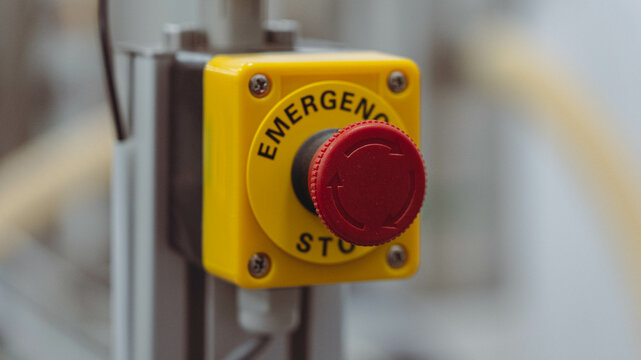 Hitting the Panic Button. Hand and Finger Reaching out and Pressing a Red Button with the words 'Panic Button' on it in white.