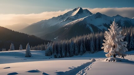 winter in the mountains HD 8K wallpaper Stock Photographic Image Generative AI