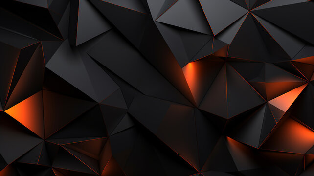 3D panoramic black triangle background. Modern geometric shape gradient metal digital technology wallpaper. Luxury pattern website banner. High-quality ultra-realistic matt finish. Generative AI