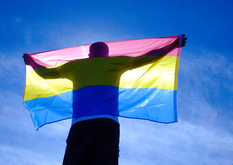 Young girl hold Pansexual flag. Celebrate Pansexual Pride Day.