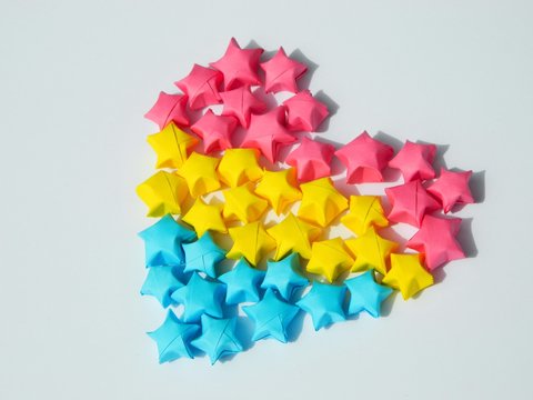 Pansexual pride flag made of corrugated paper with stripes. Concept of Lgbtqia, pansexual community, respect and sexual minorities