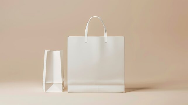 A mock-up of a blank craft package, featuring a white paper shopping bag with handles against a neutral background.