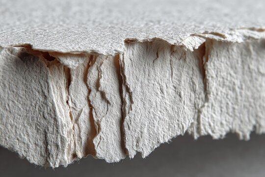 Torn paper layers revealing fibrous cardboard core and frayed edges macro texture still life