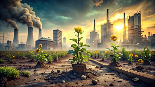 Toxic plants thriving in a post-apocalyptic setting, symbolizing rebirth and resilience , toxic, plants