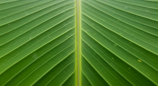 Detailed Close Up Of A Bright Green Vibrant Banana Leaf