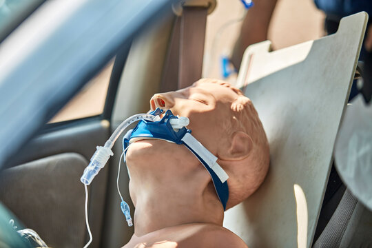 instructor guides an adult in CPR training, importance of first aid emergency medicine. careful compression on a CPR dummy chest, practice life-saving skills, preparing for accidents and disasters.