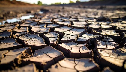 Close-up of cracked dry earth surface showing deep fissures and parched soil texture
