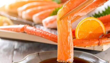 箸で楽しむカニ刺身の繊細な身質が伝わる一皿