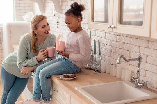 Conversation, mother with daughter talking on sofa and living room in their home. Communication or discussion, family or bonding time and female parent with child chatting on couch or lounge