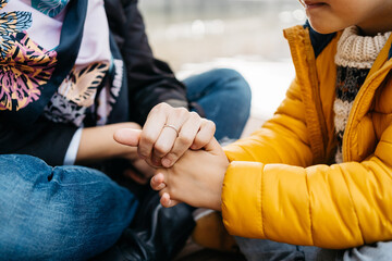 Crop black mother and kid holding hands
