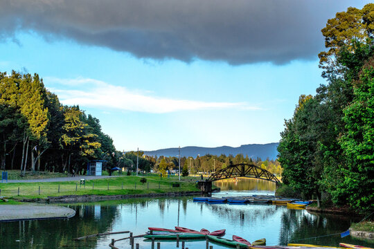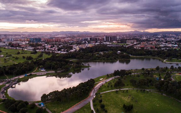 Lake in the Parque Metropolitano Simón Bolívar (English : Simon Bolivar Metropolitan Park), Bogota, Bogotá, Colombia.