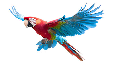 Vibrant parrot soaring in tropical wilderness