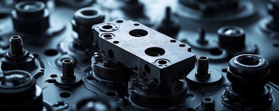 Skilled technician assembling hydraulic parts in workshop