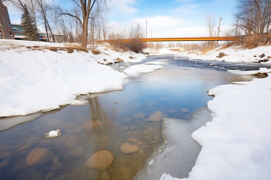 partial ice coverage on a flowing river