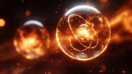 Two proton particles collide on a black background, symbolizing high-energy physics, particle collisions, and subatomic interactions. The image represents the unseen forces shaping the universe's fund