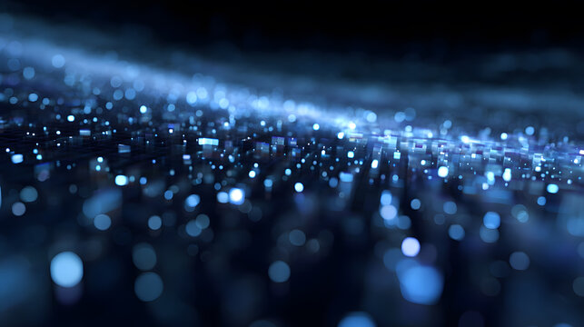 Cosmic Sparkle: A breathtaking close-up view unveils a sea of ethereal blue particles. Witness a mesmerizing, abstract depiction of flowing energy.