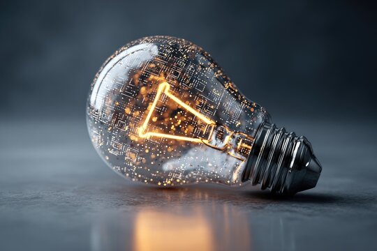 Glowing light bulb filled with sparkling particles representing creativity and ideas.