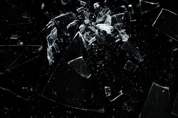 Scattering dust and grain on dirty glass over blurred outdoor horizon, monochrome texture
