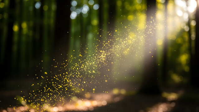 A magical woodland scene filled with golden fairy dust.