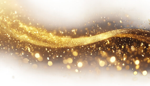 Golden glitter stream flowing across dark backdrop with bokeh sparkle trail