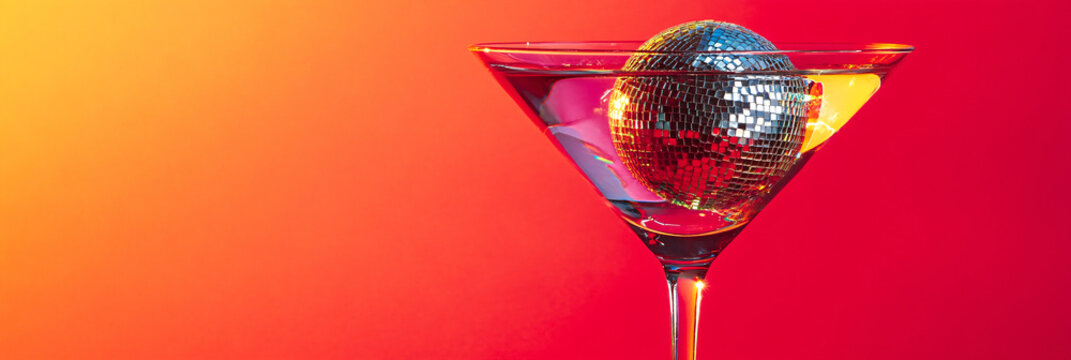 Vibrant cocktail party celebration with neon text and shaker