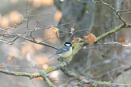 Cute great tit (Parus major) bird perched on a branch