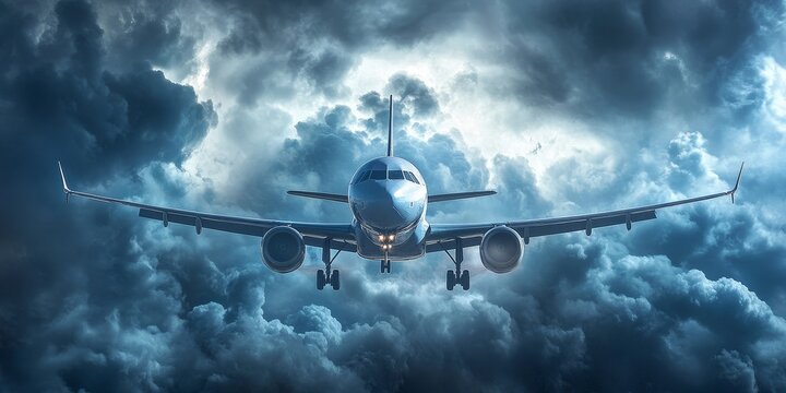 Airplane Navigating Through Turbulent Stormy Skies with Dramatic Atmospheric Conditions