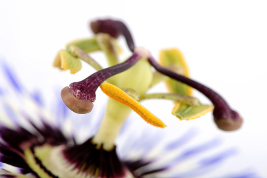 Passiflora (passion flower) isolated on white background. Big beautiful flower macro