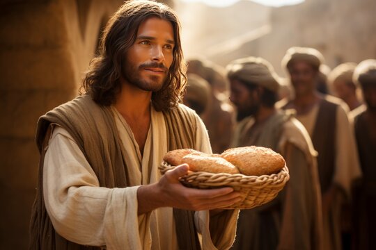 Sharing the Harvest's Embrace: Tender hands pass a fresh loaf of bread across a warm, candlelit table, surrounded by seasonal pumpkins and autumn leaves, representing shared gratitude and connection.