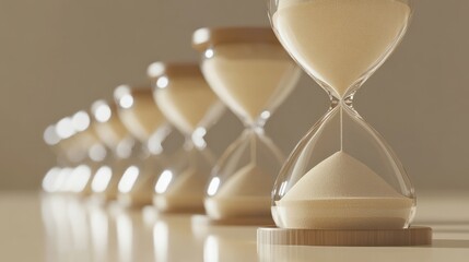 Elegant hourglass with flowing sand, symbolizing passing time and the concept of a timekeeper in a luxury setting. Stock photo