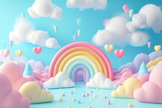 Cotton candy land A whimsical and dreamy landscape A visual feast of soft pastel colors and fluffy textures