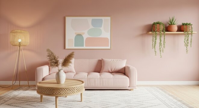 A cozy pastel room with a heart-shaped cup, flowers, and a warm ambiance.