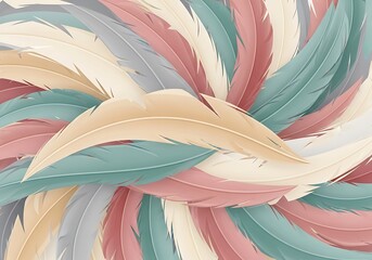 Feathers multicolored background in pastel colors. Feathers set pattern. Natural pastel feathers set in muted colors.Beautiful feathers surface. Feather wallpaper.nature materials background