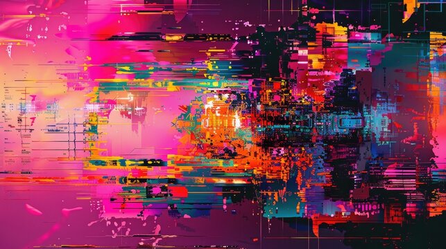 Colorful digital glitch art with vibrant texture